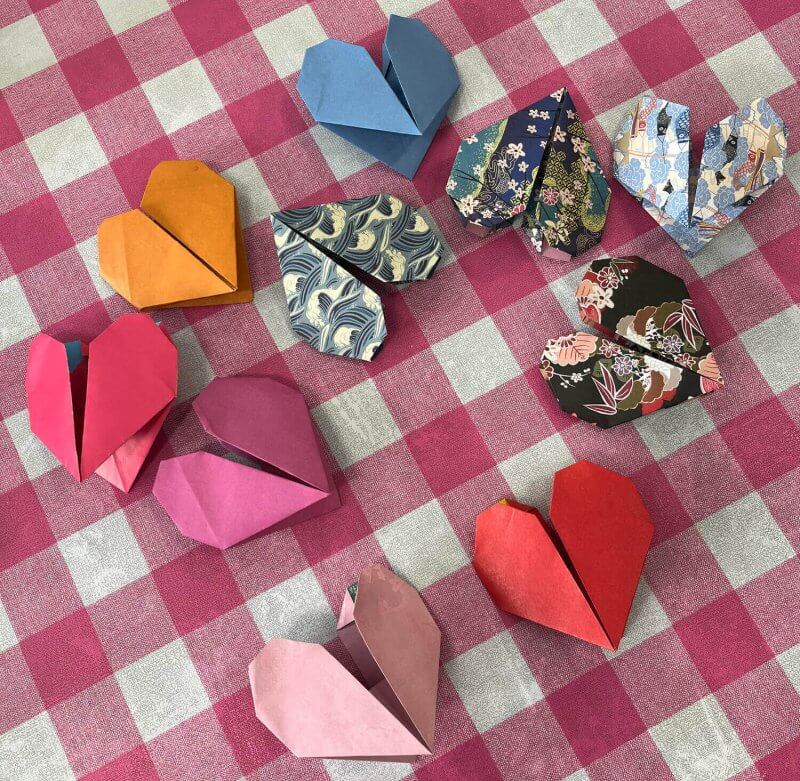 Today’s creations were paper hearts with little messages inside, a nod to Valentine’s Day! 💜💖❤️ We even had some enthusiasts stick around for an advanced flower lesson!